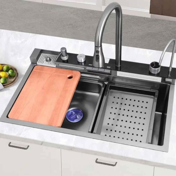 Şelale akışlı batarya, suyun akışını doğal ve estetik bir hale getirirken LED ekranı, su sıcaklığını ve akışı anlık olarak takip etme imkanı sunar. Damperli cam panel, modern mutfak tasarımlarına uyum sağlarken, su sıçramalarını minimize eder.